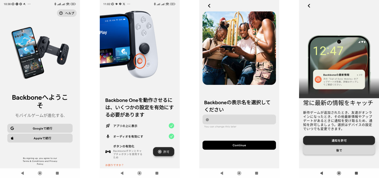 Backboneアプリで初めにすることは、BACKBONE Oneを動作させるための設定とユーザー登録の2つです。