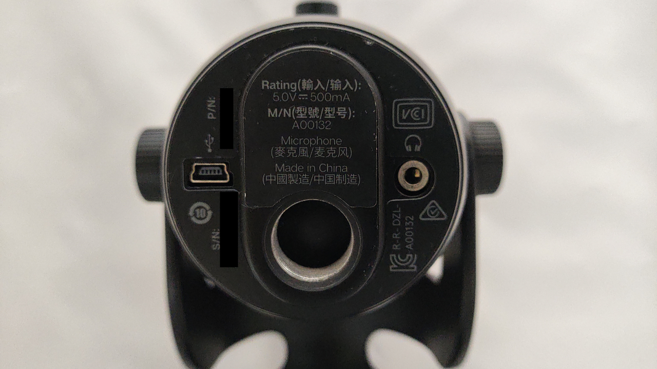イヤホン・ヘッドフォンのジャックはマイク底面にあります。