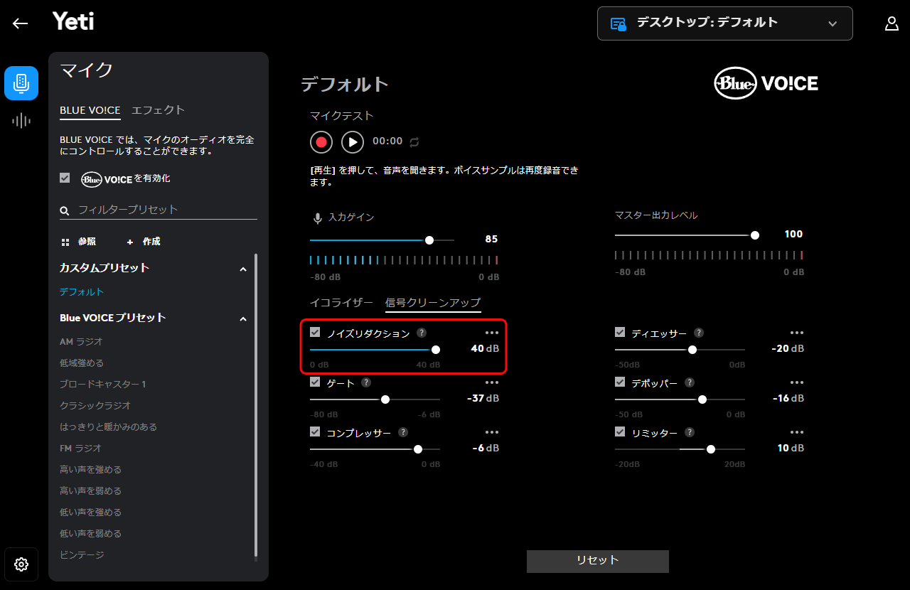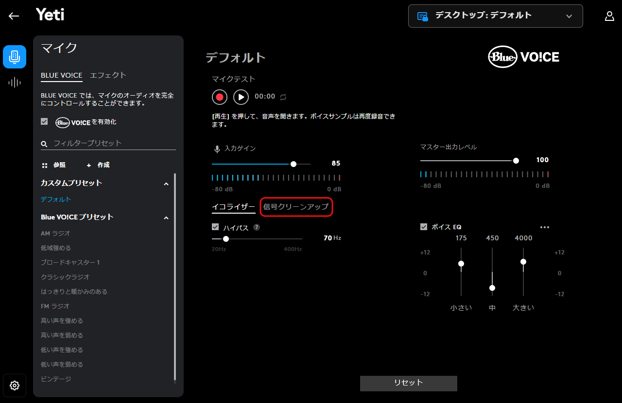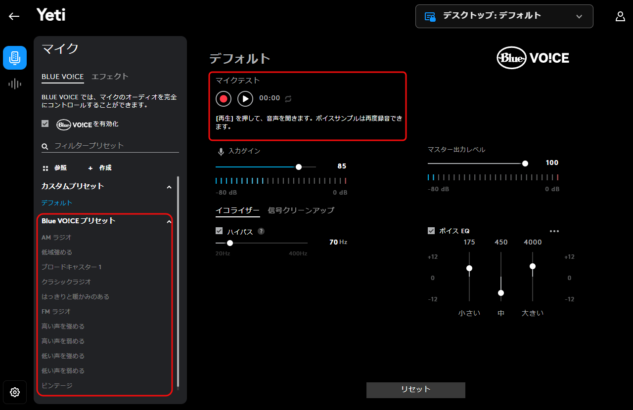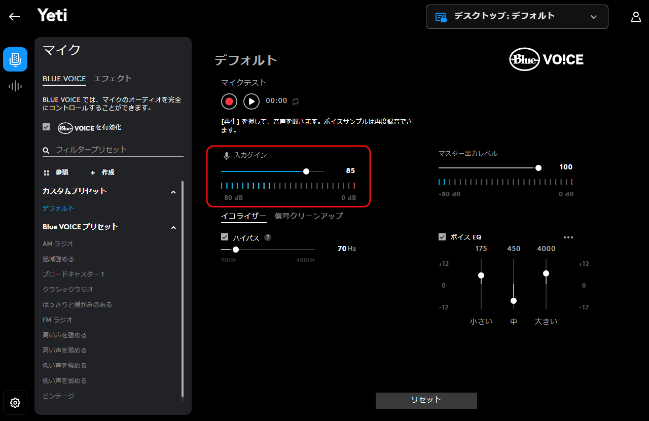 Blue Yeti ソフト 「Blue VO!CE」の設定
