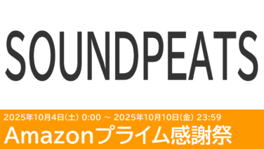 Amazonのセール情報 SOUNDPEATSのイヤホンがセール!クーポンコードあり!Amazonプライム感謝祭 2025年10月7日(火)0時~10月10日(金)23時59分までAmazonプライム感謝祭が開催されます。プライム感謝祭先行セールは10月4日(土)0時スター... 2025.10.04 Amazonのセール情報セール・お得情報