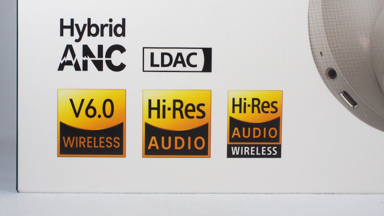 下部にはLDACのロゴ、Hi-Res認証マークなどが並びます。