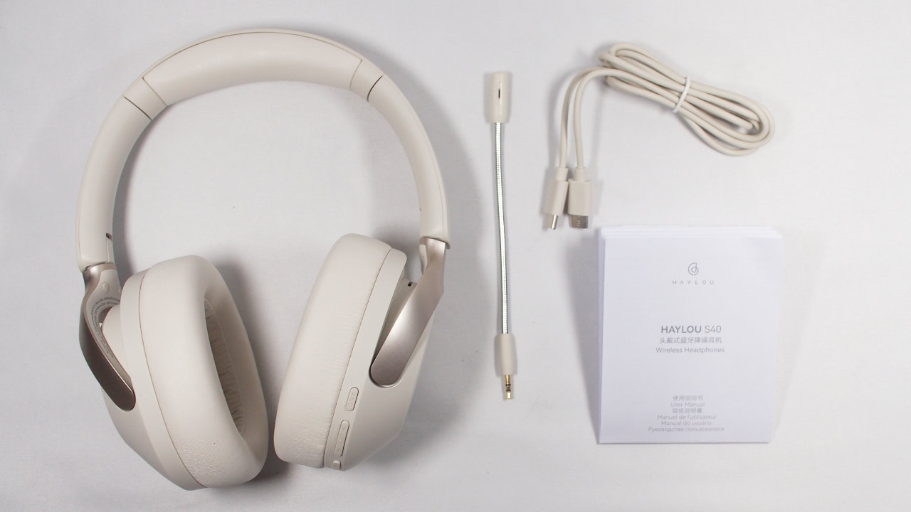 Haylou S40本体以外の付属品は、マニュアル、USBケーブル、マイクの3つ。