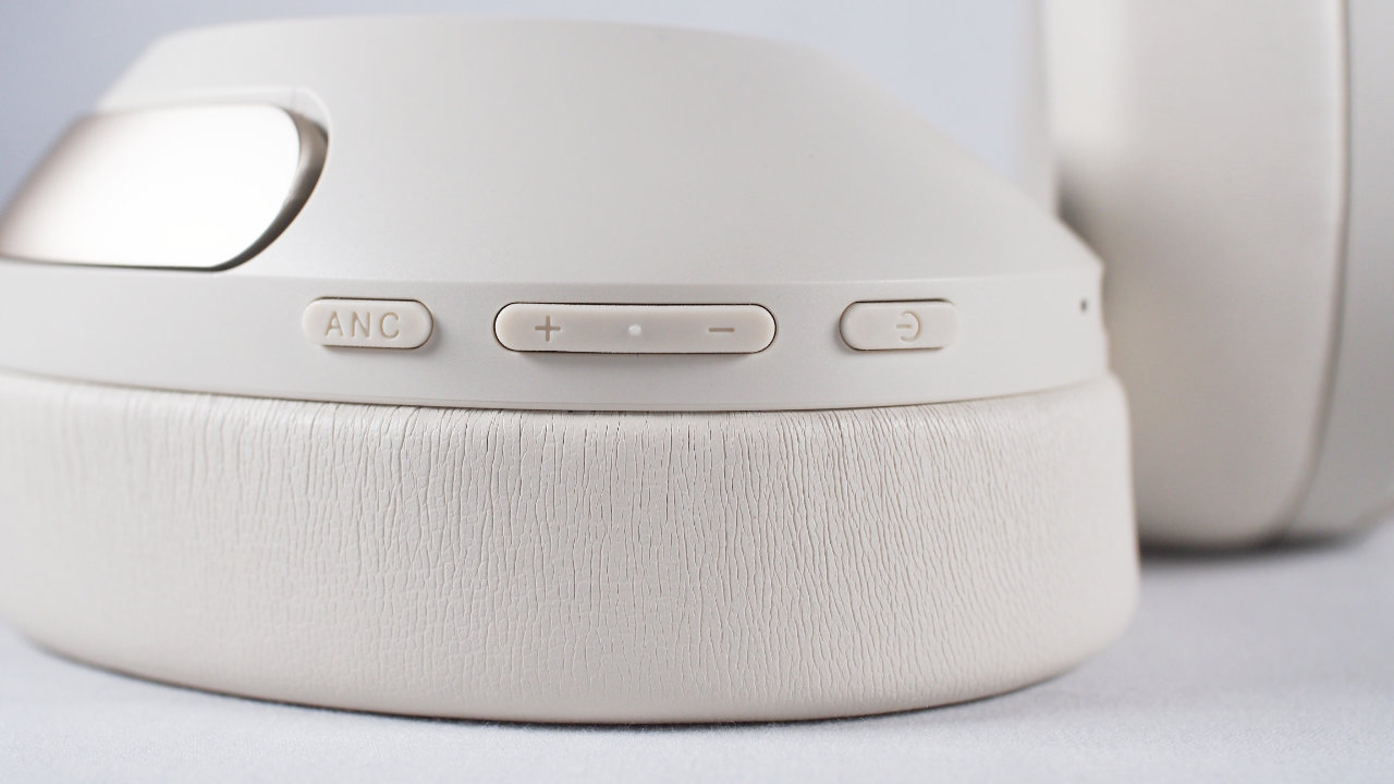 中央に音量ボタン、両脇にANCボタンと電源ボタンが配置されています。