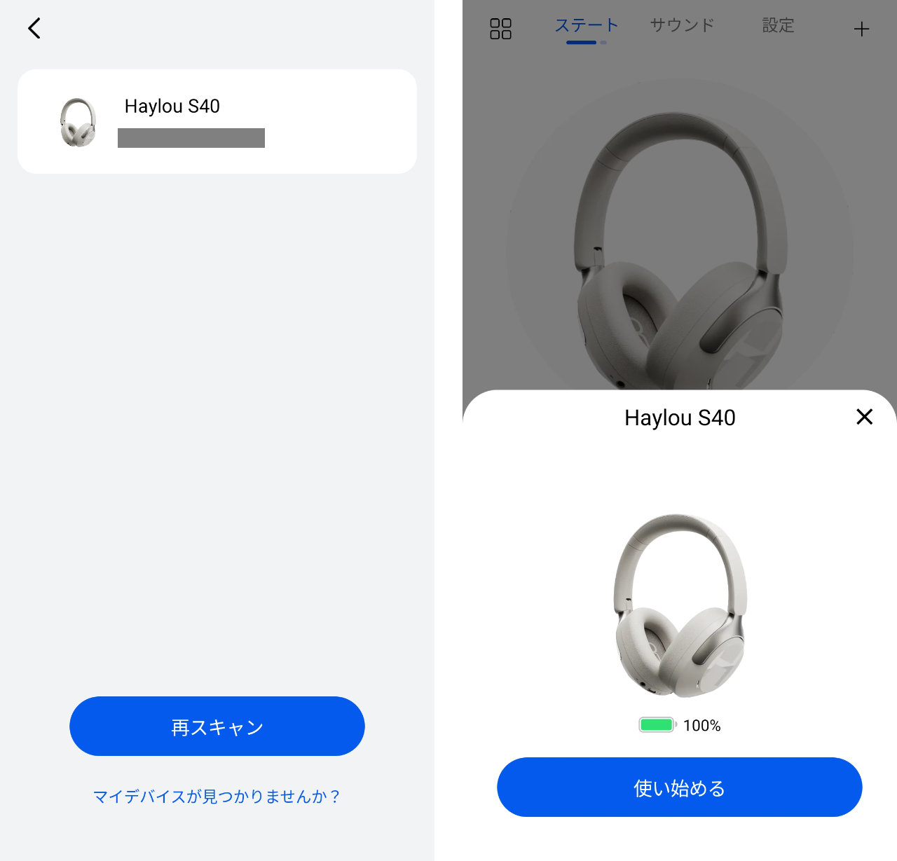 追加は簡単で、すでにHaylou S40が表示されていたので画面に従ってポチポチするだけで完了しました。