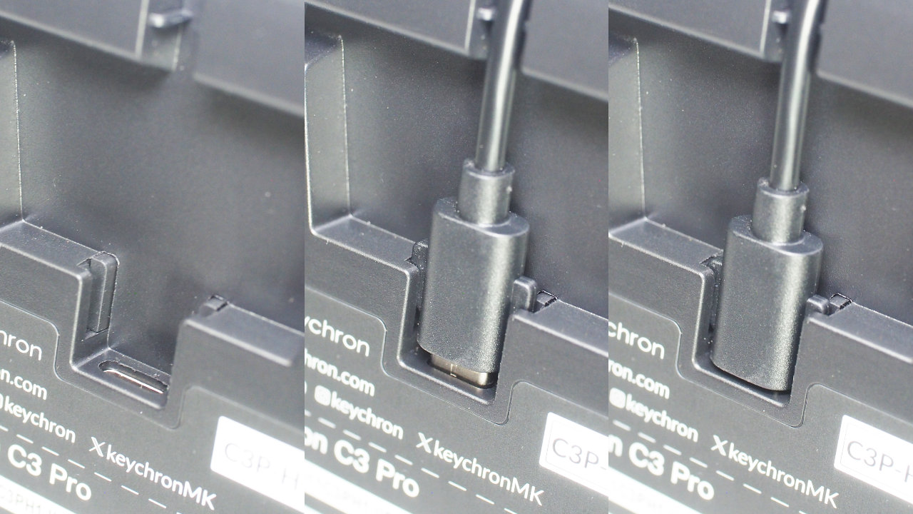 USBケーブルはType-C側に凸部分があり、キーボード側の凹みにはめ込む形状になっています。