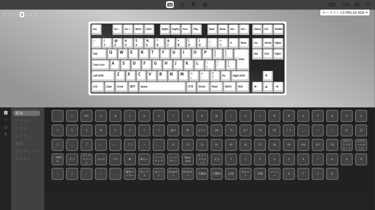 Keychron C3 ProはVIAとKeychron Launcherの2つのキーマップアプリケーションに対応しています。