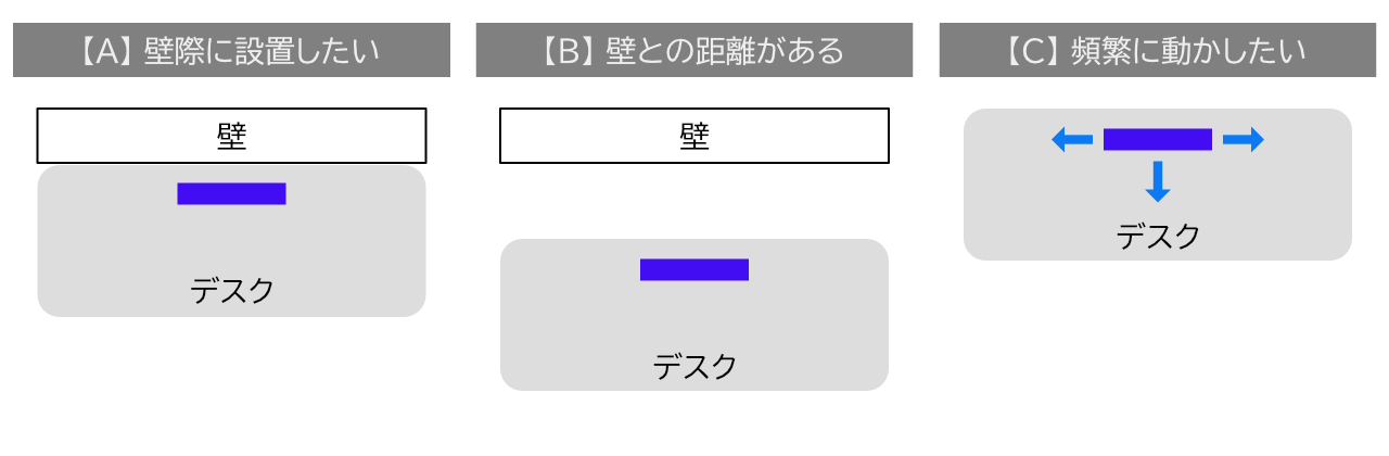 ケースとしては少ないかもしれませんが、デスクと壁に20cm以上の距離がある場合は選択肢が広がります。