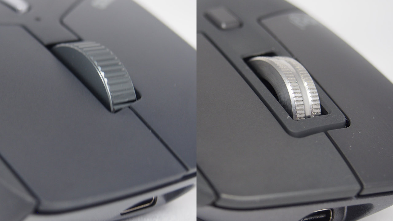 しっかりとマウスをホールドする人は、親指の先でサイドホイール(サムホイール)を回すことになるのでここまでの違いは出ないです。