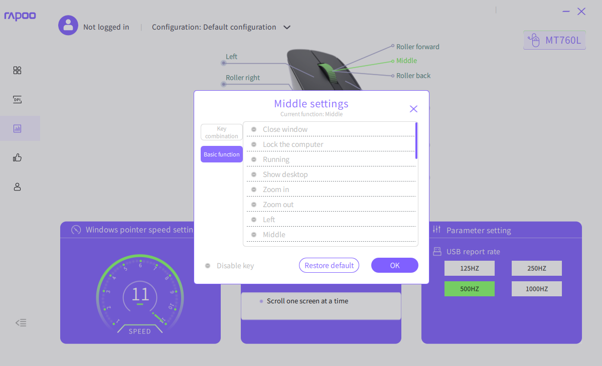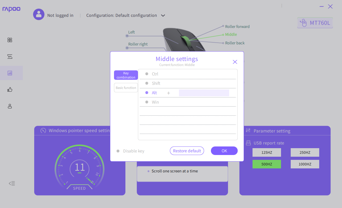 Rapoo MT760 のボタンの割り当て変更は専用ソフトから行えます。