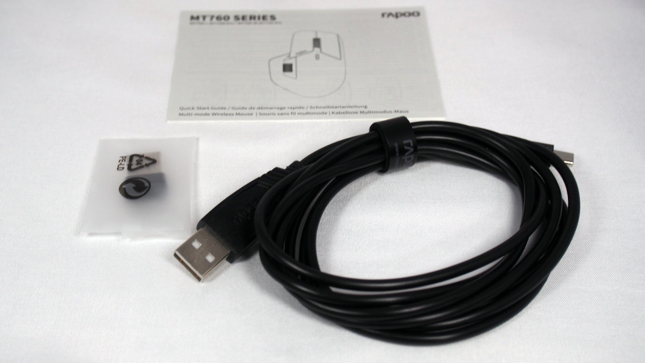 付属品は、USB Type-Cのケーブル、無線接続のレシーバー、マニュアルです。