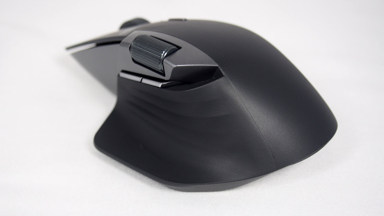 Rapoo MT760 Lの場合、サイドホイール(サムホイール)は上に飛び出しているので、上部(天面)を親指の腹部分で回すのがスムーズです。
