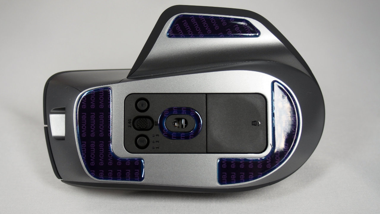 底面には電源とBluetooth・無線を切り替えるスイッチ、ペアリング用のボタン、チャンネルを切り替えるボタンがあります。