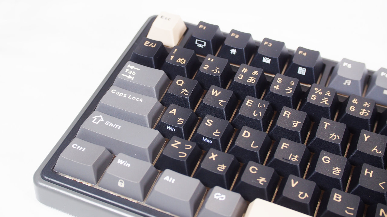 グレーのキーキャップには白で、ベージュのキーキャップには黒でそれぞれ印字されています。