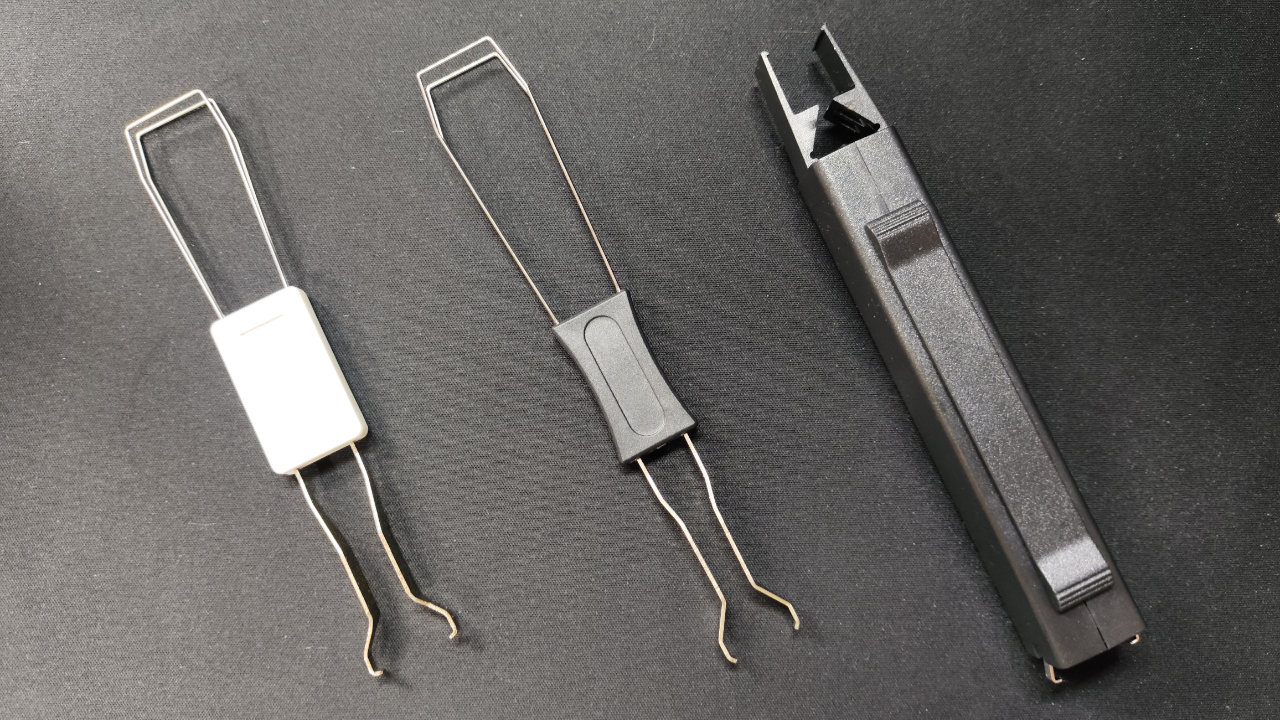 工具の写真の下側部分をキースイッチに差し込みつまんで引き抜きます。