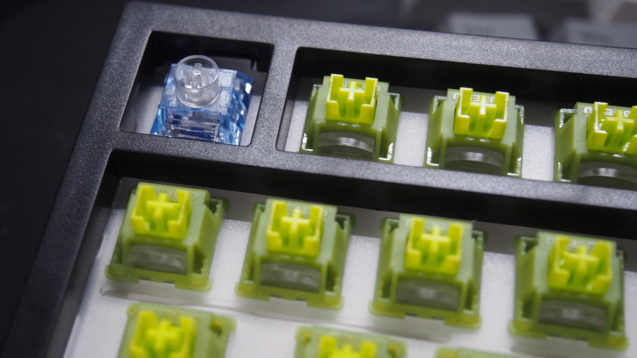 例えば、基本はリニア軸だけどエンターキーやスペースキーはタクタイル軸にするなど、特定のキーだけ別のキースイッチにするカスタマイズもできます。