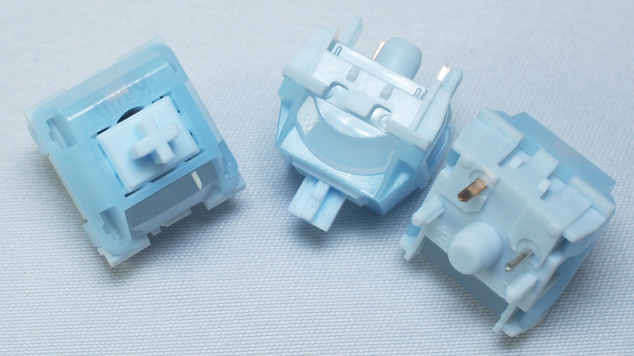 | Kailh Frost Blue Switch | リニア | 45gF (±8g) | 2.0mm (±0.4mm) | 3.6mm (±0.4mm) | MX Cream POM | 7,000万回 |