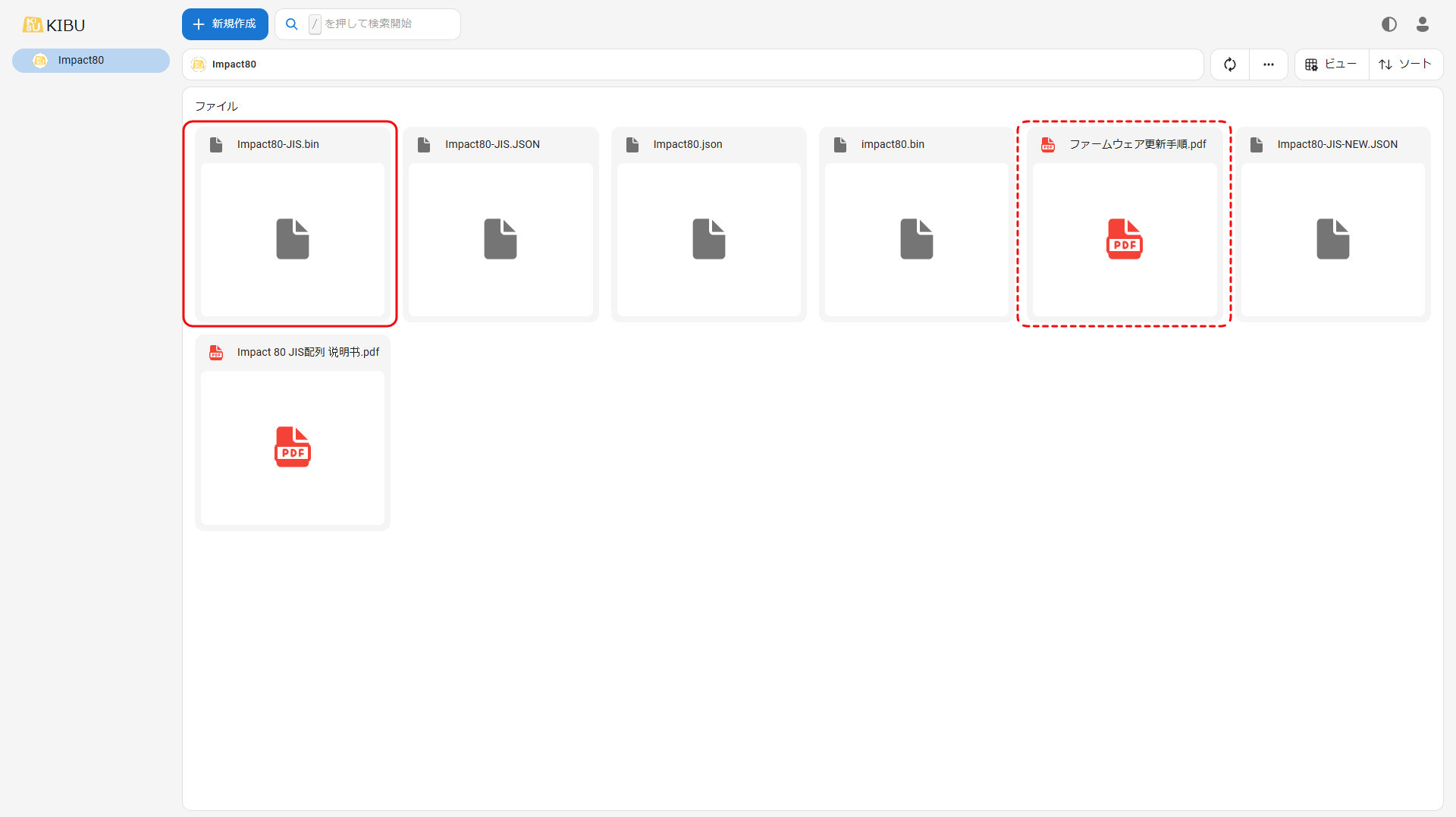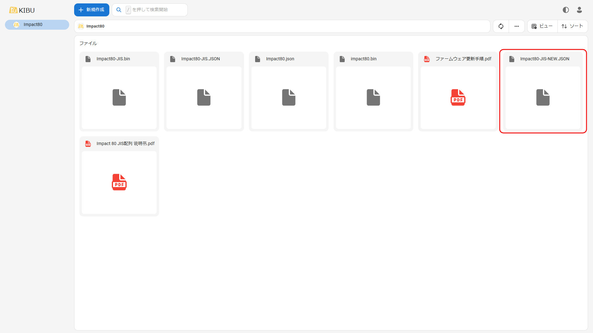 - KIBUSHOPのサイトからファームウェアをダウンロードする。(Impact80-JIS.bin)