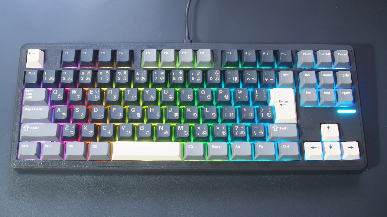 テンキーレスのTKLと呼ばれる80%サイズのキーボードで、キー配列に独自配列はありません。