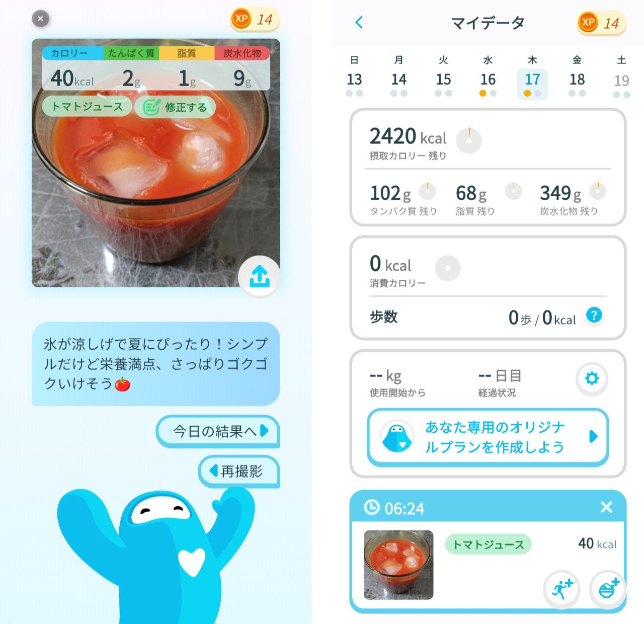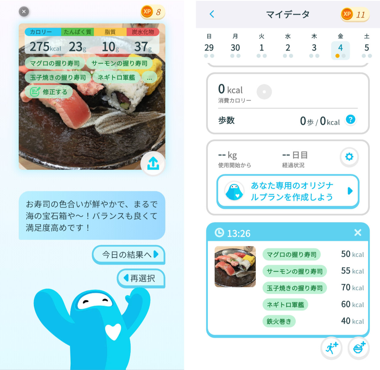 アプリには、パーソナルヘルスケアAI「ウェリーくん」がいて、データの内容に沿って様々なことを提案してくれます。