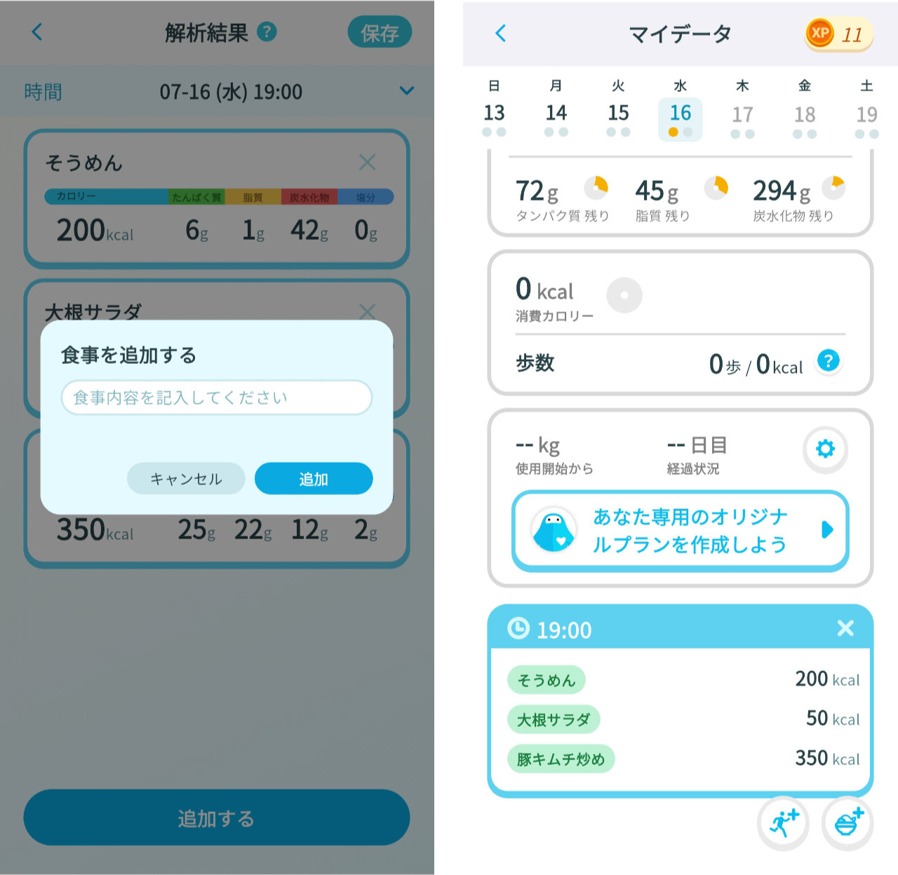 もし写真を撮り忘れても料理名・メニュー名を登録するだけでもカロリーを算出してくれます。