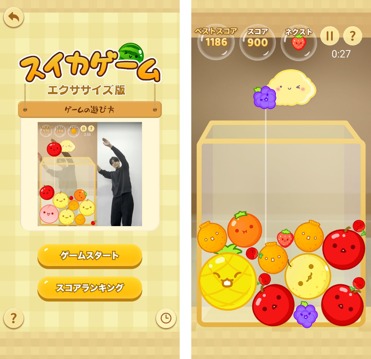 ウェリーアプリには全身で行うスイカゲームも実装されています。
