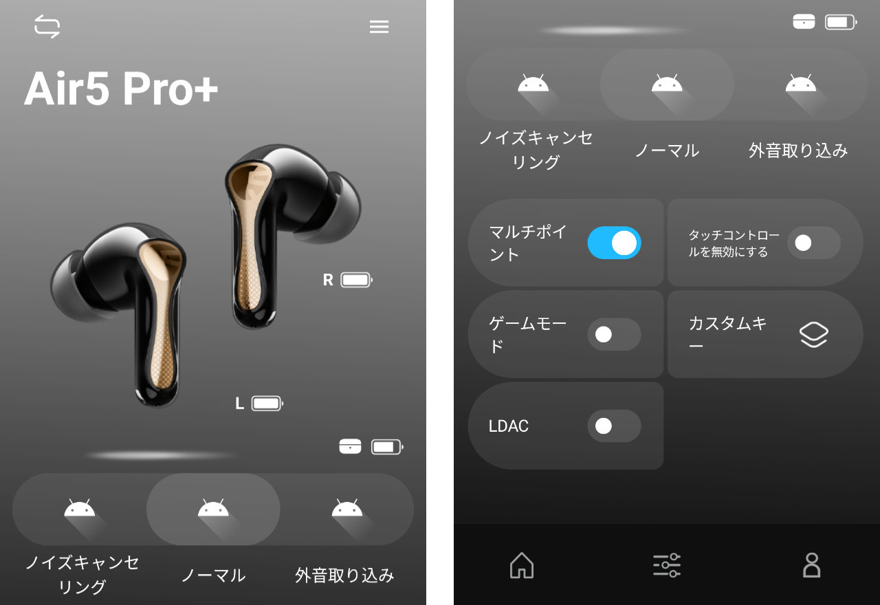 SOUNDPEATS Air5 Pro+の各種設定が行えるPeatsAudioアプリにも触れておきます。