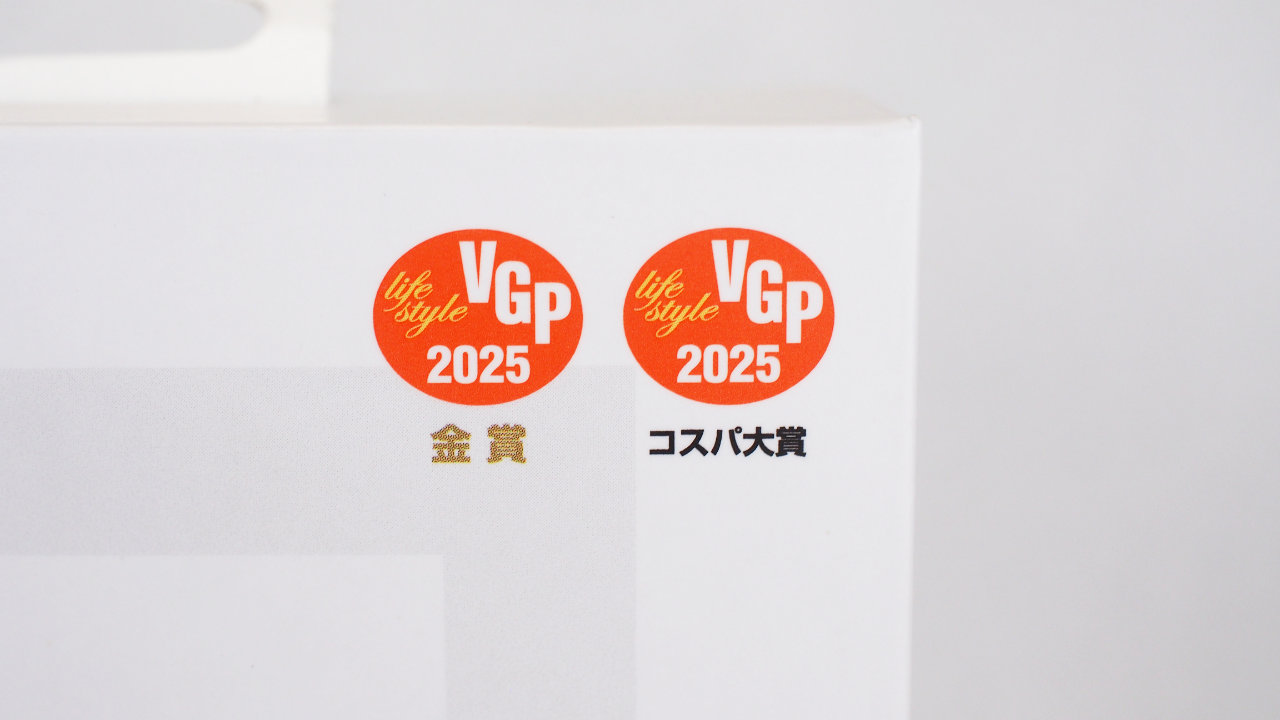 パッケージ前面の上部には、VGP2025 金賞とVGP2025 コスパ大賞のマークがあります。
