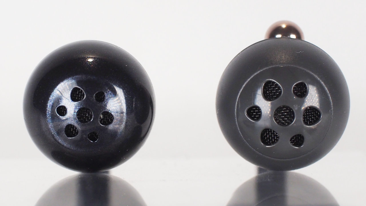 ドライバーにはこだわりの「12mmデュアルマグネットダイナミックドライバー(チタンPVDコーティング)」を採用しているので、音が出る部分の穴は大きめになっています。