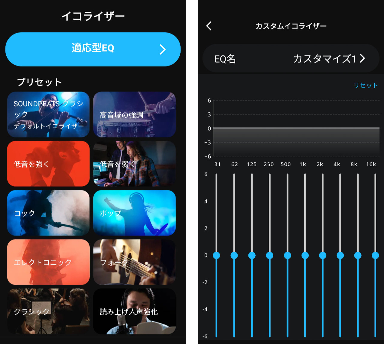 ダイナミックEQを有効にして使用することをメーカーは推奨していますが、低音が強すぎると感じる場合はダイナミックEQをオフにして、イコライザーで調整することもできます。