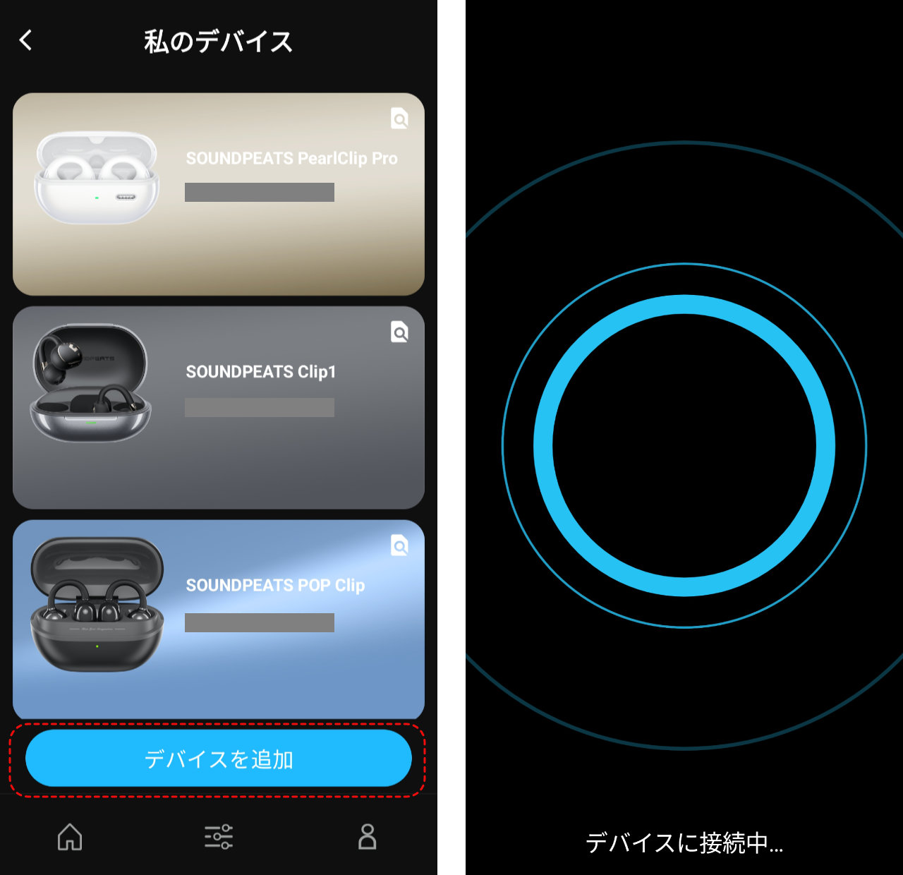 「デバイスを追加」をタップすると「デバイスに接続中」となるので、接続されるまで数秒待ちます。