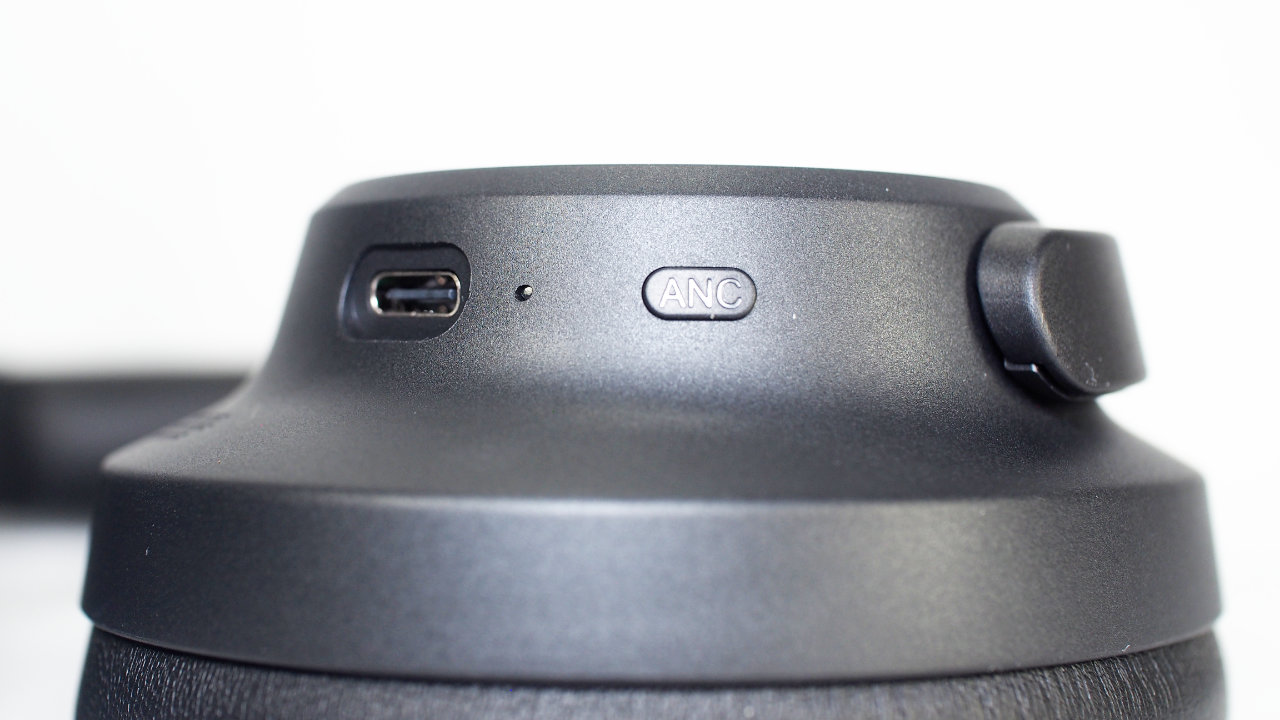 左側にはANC(ノイズキャンセリング)の切替ボタンとUSB端子があります。