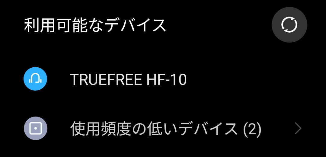 デバイスに接続するをタップして、TRUEFREE HF-10と接続されました。