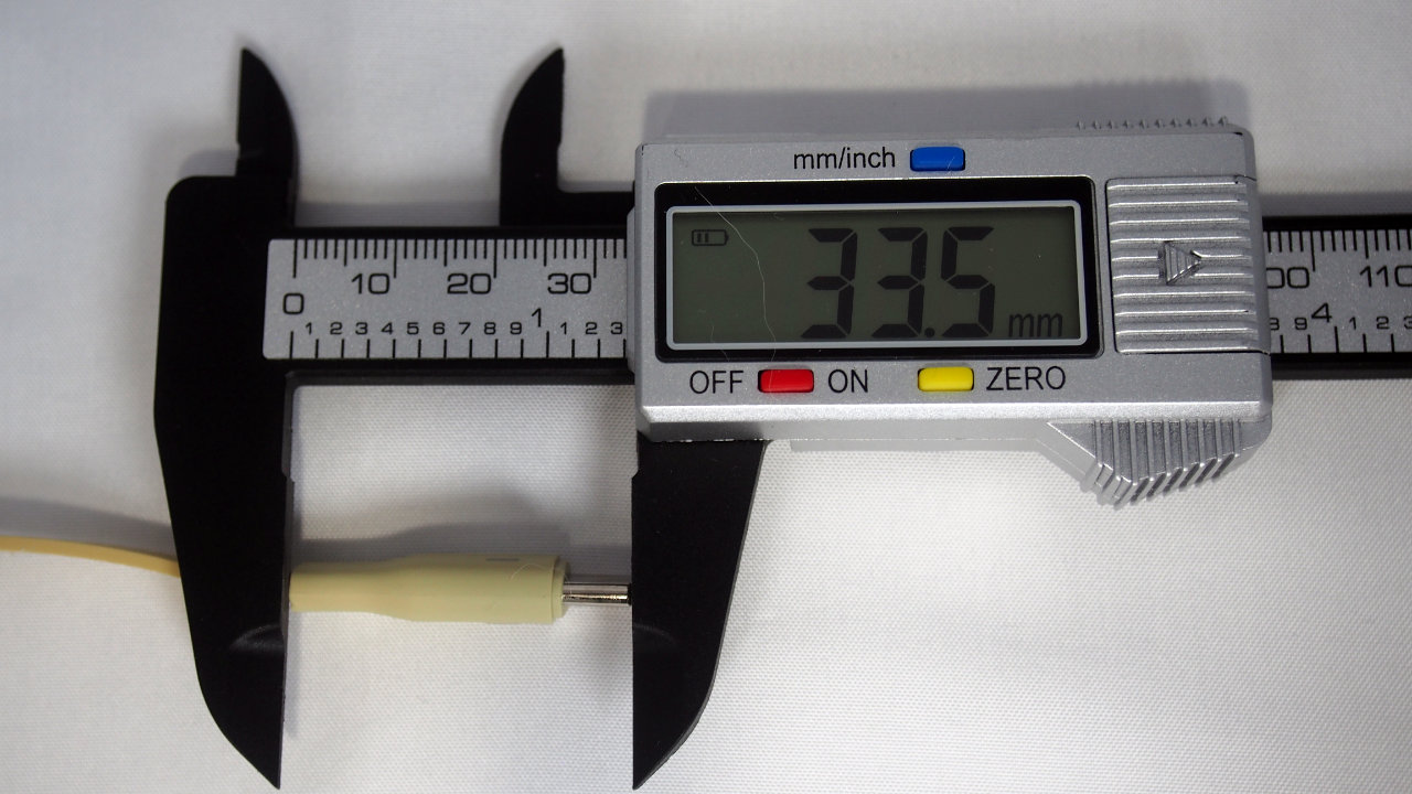 ケーブルを延ばした状態で一般的なケーブルと比較するとその柔軟性が際立ちます。
