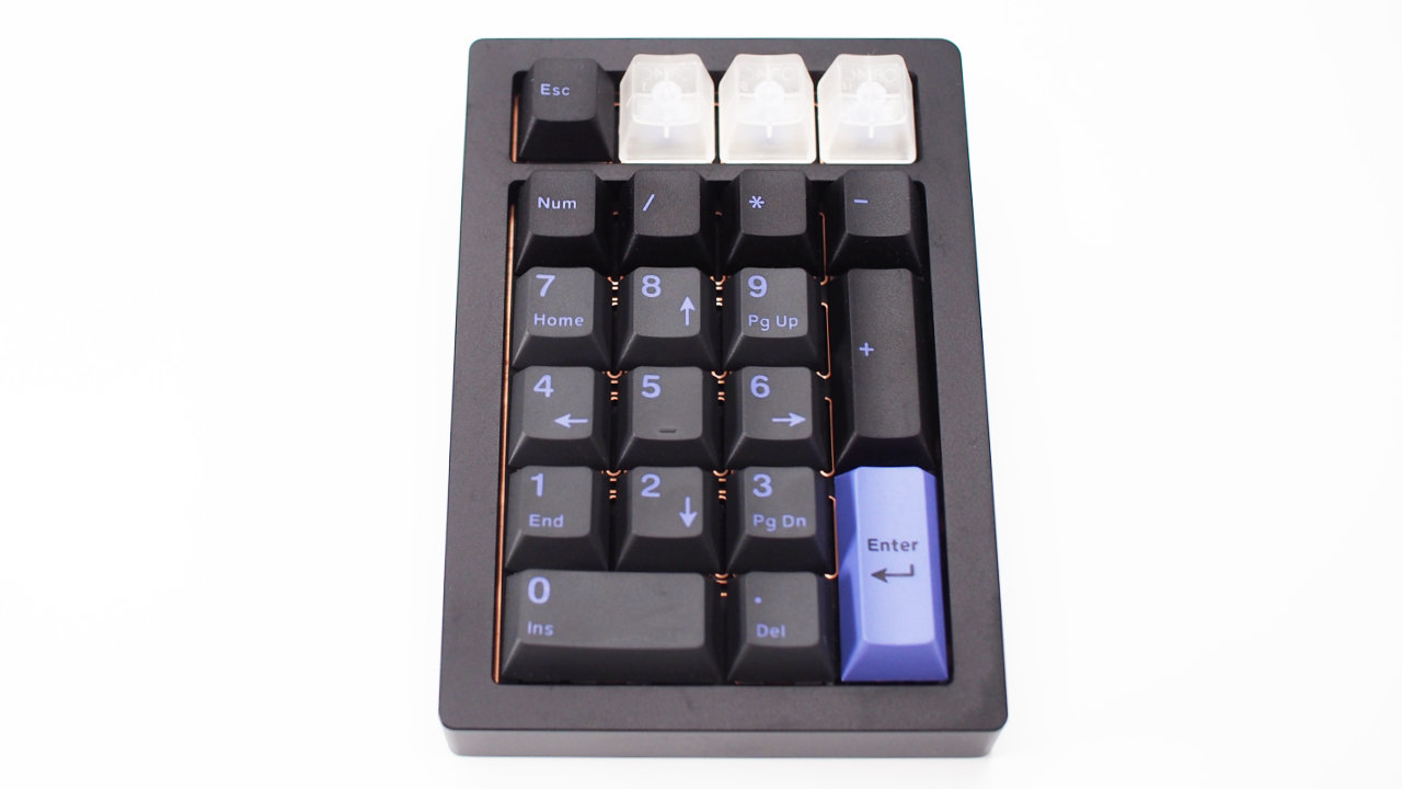 プレートが同じFR4であれば打鍵感も近しくなり、違和感なく使用することが出来るテンキーです。