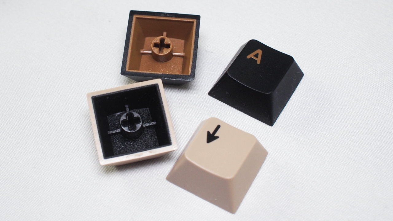 グレーのキーキャップには白で、ベージュのキーキャップには黒でそれぞれ印字されています。