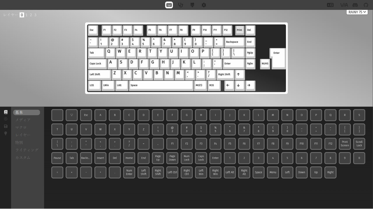 なおWOBKEY Rainy 75のキー配置はVIAで変更することができます。