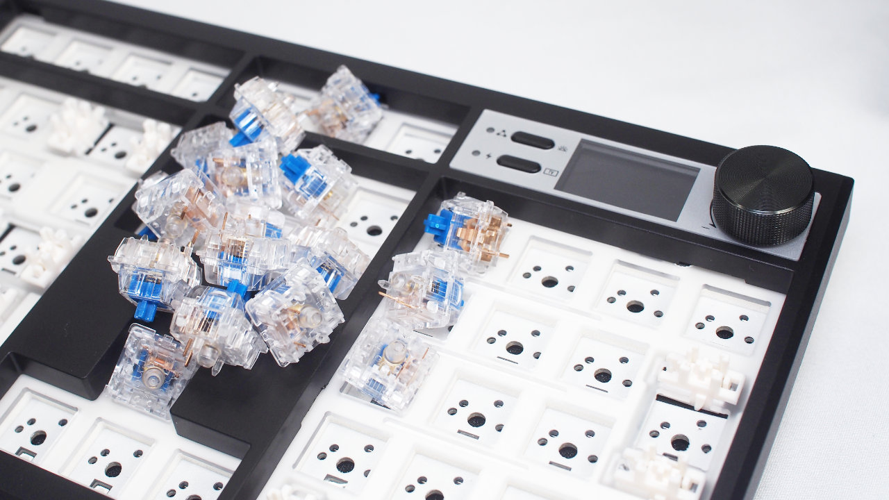 ZUOYA GMK104だけではキーボードとして使用できないので、キースイッチとキーキャップを取り付けます。