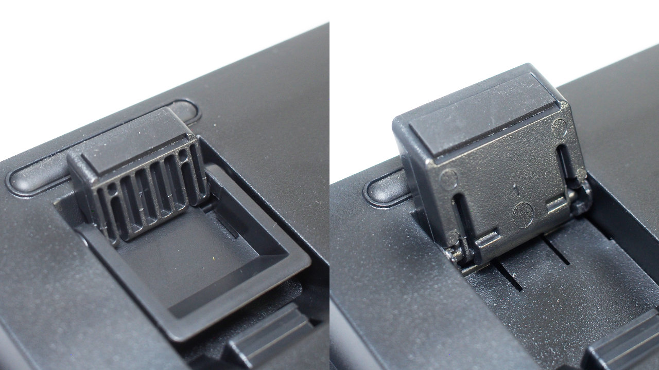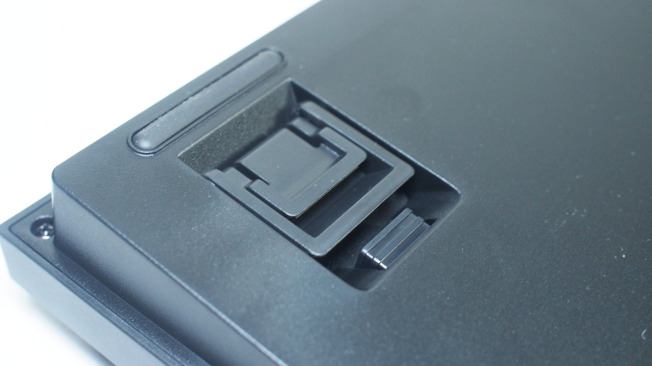 2.4GHzの無線レシーバーは脚部分に収納されています。