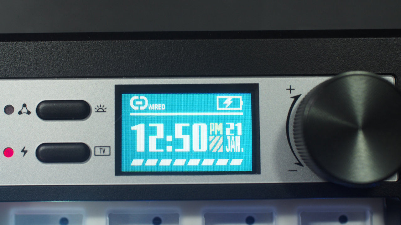 最大の特徴は右上に液晶とつまみ(ノブ)が付いている点です。